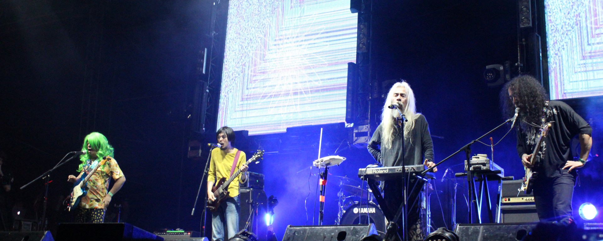 Después de una larga espera, por fin pudimos ver en la Ciudad de México a los Acid Mothers Temple & The Melting Paraiso UFO, cortesía del festival NRMAL. Como todo fanático, estuve al frente del show, esperando ansioso los primeros riffs que abrirían el viaje sonoro. Llegadas las 22:20 subieron al escenario Makoto, Hiroshi, Tabata, Satoshima y S/T, tras hacer una última revisión se encendieron las luces y la magia comenzó. La banda agradeció al público mexicano el recibimiento caluroso e iniciaron con un intro estruendoso, Hiroshi y Makoto se transformaron, pues entraron en un estado de trance salvaje: el primero señalaba al publico con sus dedos y les clavaba la mirada mientras tocaba el Theremin- sintetizador Roland; el segundo movía su guitarra de un lado al otro, arriba y abajo, era como ver un show de Jimi Hendríx. Del otro lado del escenario Tabata (que vestía unas mallas de estrellas, una camisa de hamburguesas y una peluca verde bastante peculiar), Satoshima y S/T llevaban la base de las canciones, eran bastante preciosos en su ejecución.