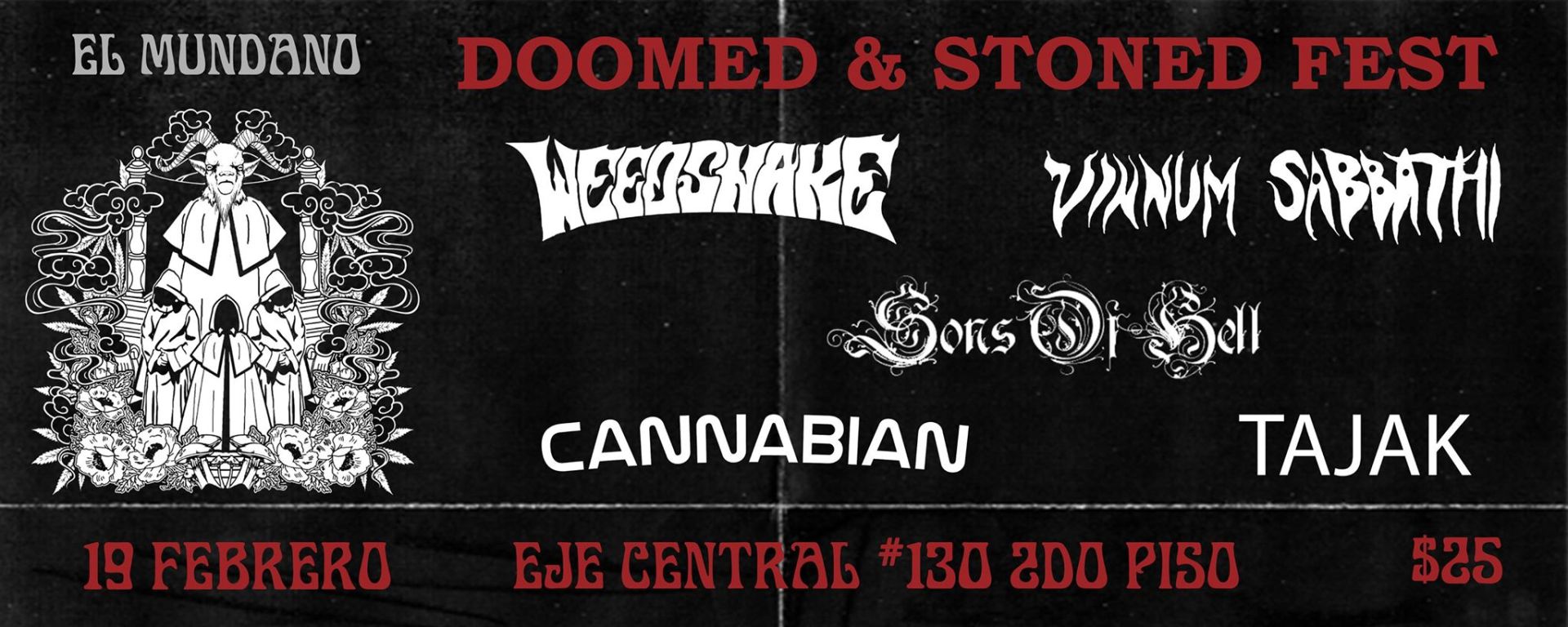 La escena mexicana del Doom, Stoner, Hard Rock, Psicodelia, Sludge y demás es aún pequeña a diferencia de países como Argentina o Chile. Sin embargo, en los últimos años ha surgido una camada de bandas por todo el país que han sentado las bases y afianzado estos sonido. Para celebrar esta unión hicimos el PRIMER festival: Doomed and Stoned en Español Vol. I con cinco bandas locales: WEEDSNAKE, VINNUM SABBATHI, CANNABIAN, TAJAK Y SONS OF HELL.
