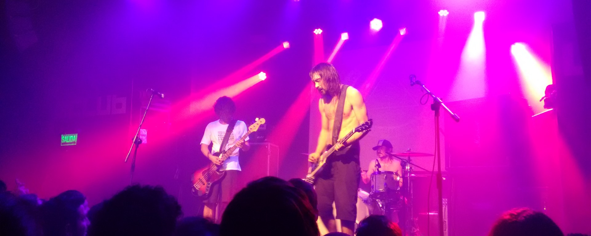 Y vino, y fue bueno!! Cuando el caldo ya estaba empezando a hervir, el volcán juntaba sus ultimas fuerzas antes de escupir lava ardiente, Banda de la Muerte fue la encargada de salir a escena y todo exploto. Arrancando su set con una trifecta imbatible, una joya de cada uno de sus discos, «Parte de mi historia»; «De la muerte» y «Ejercito de uno» demostrando solidez y tradición, no olvidando los temas de la primera época y emparentandolos con lo mas nuevo. Los muchachos están presentando «8894» editado el año pasado y producido por Jack Endino (Mudhoney, Nirvana, muchos mas..!) un disco que exuda hardcore punk por cada poro, exponiendo el ADN de la banda con canciones como «La Marcha del exilio» y «Pensando en mi». Pero los que conocemos a Banda de la Muerte desde sus comienzos sabemos que son afines a vibraciones oscuras y nebulosas también, por eso emociono la sorpresa, para «Hombre muerto caminando» invitaron Gonzalo Villagra (Audion, Los Natas) a hacerse cargo del bajo, justamente un tema con tracción a puro low y crocancia, asignaturas de las cuales Gonza esta mas que egresado. Para terminar Xon no advierte que hay mas punk, y la banda se despide con «Nación de seguidores», con un riff que va tomando velocidad hasta convertirse en un torbellino abismal, la batería en 1:40 min que dura la canción se encarga de dejarte pasmado, despierto pero al mismo tiempo sin saber bien que te golpeo. Y así, con los estados alterados, bien predispuestos, la Muerte se va, dejando todo detonado, y una vez mas no se puede imaginar mejor situación para la aplanadora que se nos viene…