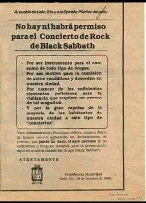 Este año el doom metal en León (si las pandemias lo permiten) podrá cobrar una viejísima afrenta, pues corría el año de 1989 cuando un desplegado de las autoridades municipales en los medios de comunicación rechazaba categóricamente la presentación de nada más y nada menos que de Black Sabbath, al considerarlo como un evento que incitaba el consumo de drogas y la realización de actos vandálicos.