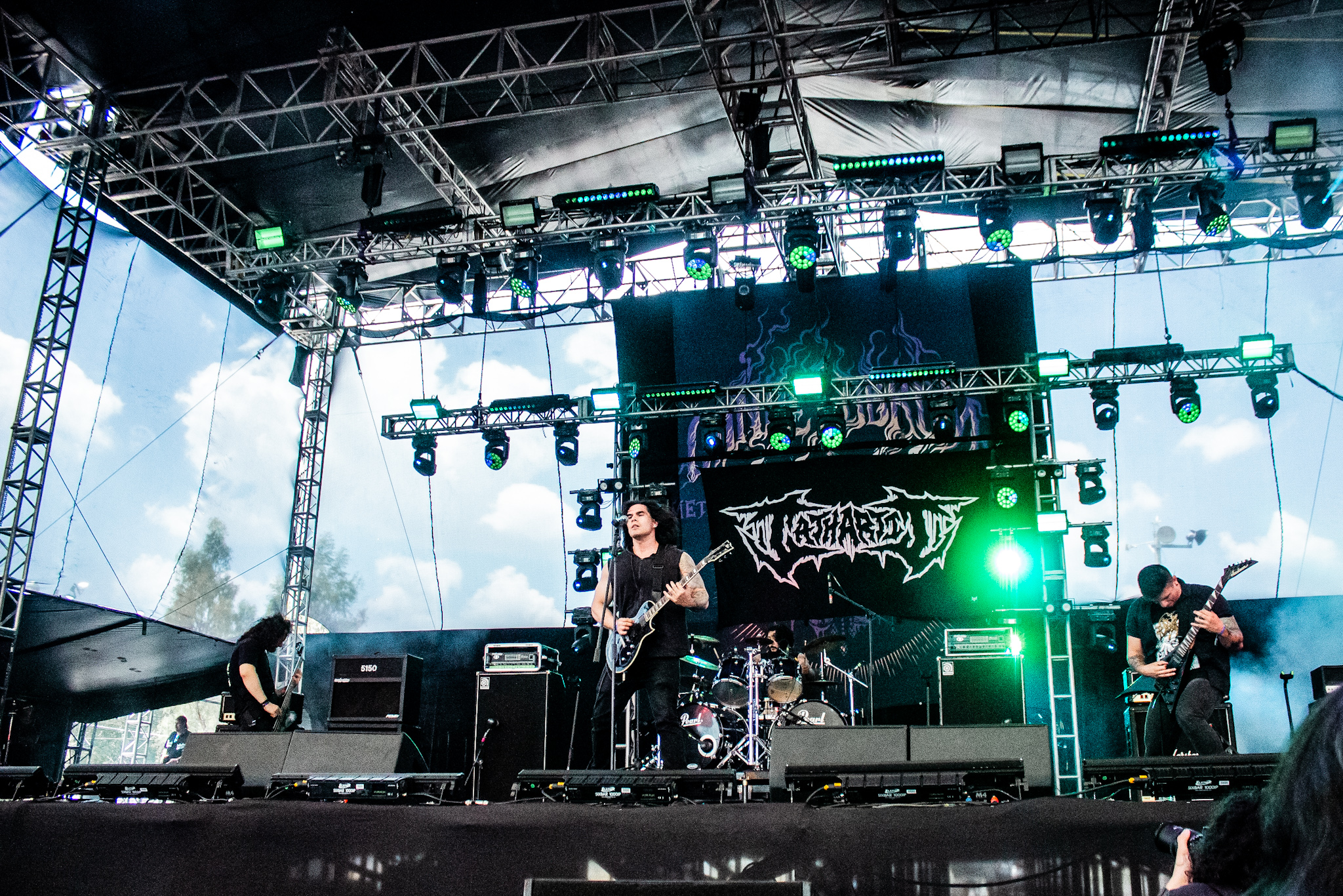 La locura y el caos se desataron con los legendarios VIO-LENCE (Thrash desde 1985), quienes utilizaron el tema “El Rey” de José Alfredo como intro para dar paso al «Kill on Command» y con ello todo explotó: mosh pit, gente volando, sudor y gritos salvajes. La voz de Sean Killian comandaba la violencia y los riffs de Phil Demmel marcaban los tiempos de ataque, por cierto, qué buena máscara de Rey Mysterio.